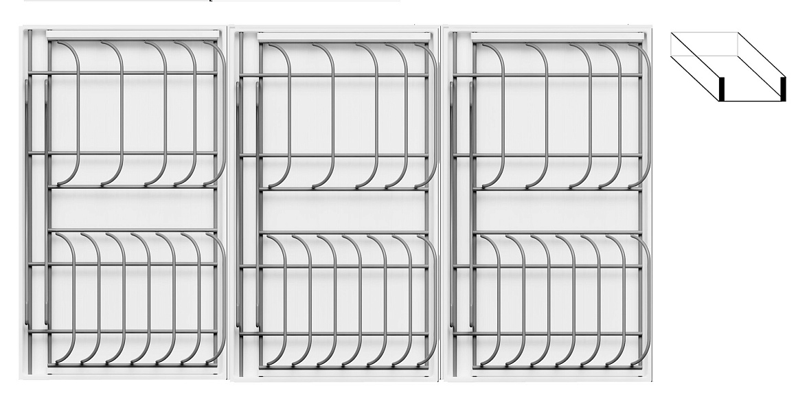 • 2 больших модуля с решеткой + 1 малый модуль с решеткой