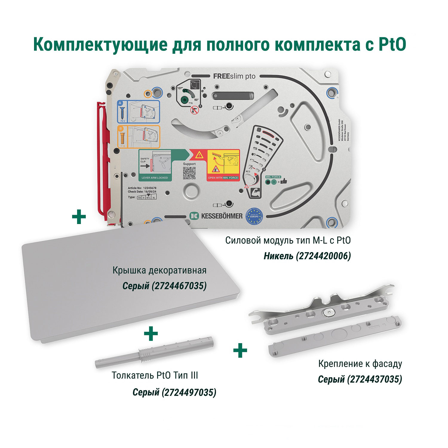 Полный комплект подъемного механизма ФриСлим ФЛАП c толкателем PTO тип III для накладного монтажа, цвет СЕРЫЙ Kessebohmer | официальный магазин