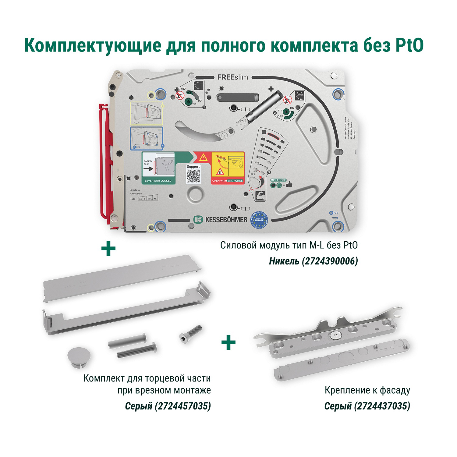 Силовой модуль тип M-L левый и правый, к подъемнику ФриСлим Флап, H 225-650, 2 шт + 4 установочных штифта, 8 шурупов 4х20 мм, цвет НИКЕЛЬ (2724390006)