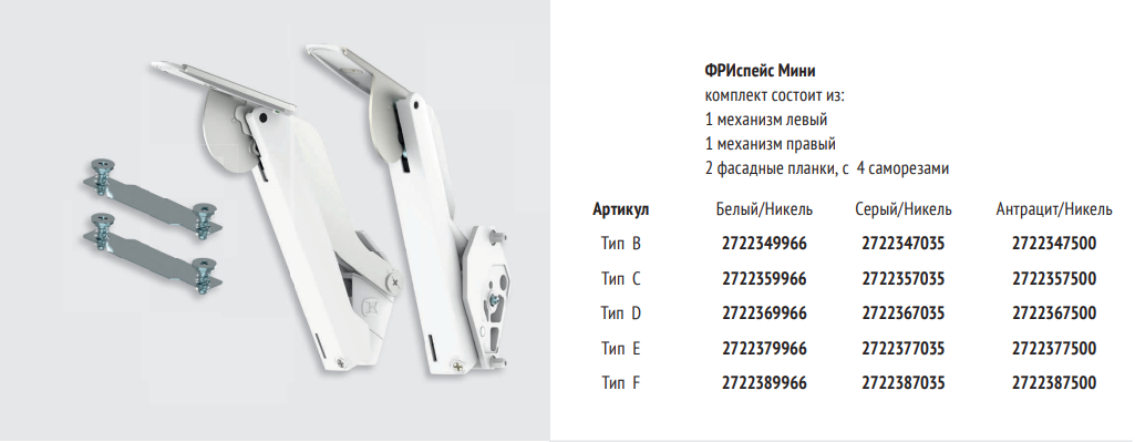 Подъемник ФриСпейс, тип B, Комплект из 2 шт (правый и левый) и 2 крепления к фасаду, цвет СЕРЫЙ/никель (2722347035)