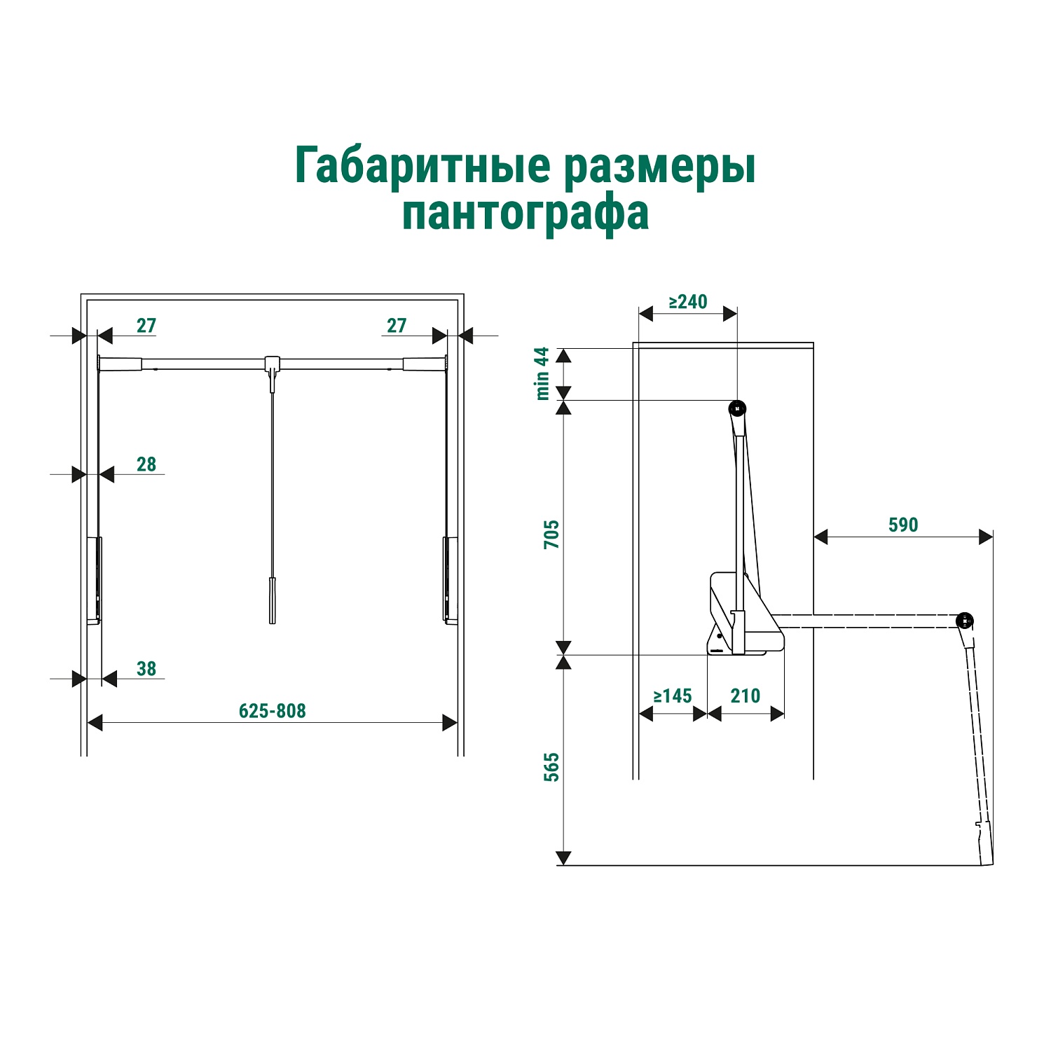 Conero Пантограф для гардеробной стандартный, Конеро W 625-808 мм, нагрузка 0,5-12 кг